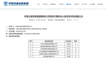 2016年10月19日,齐鲁交通发展集团有限公司招标代理机构入库项目进行公开开标,我公司以综合得分第一的成绩成功入围。