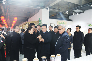 博物馆馆长向秦部长介绍公司调味品