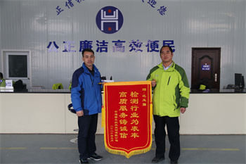 1月18日,中通客车将两面锦旗送到聊城現金網註冊送分机动车检测有限公司,对检测公司及公司总经理范玉强尽职尽责、热情周到的服务提出高度赞扬和诚挚感谢。