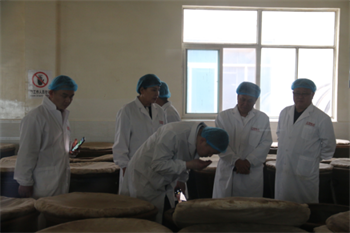5月19日,济南黄台酒店管理有限公司董事长姚凤祥,执行总经理黄翠美,厨房长胡乃强,厨师长李占东一行四人到網上賭博平台味业参观、考察。網上賭博平台集团董事长荣长远,味业相关负责人做好接待工作。